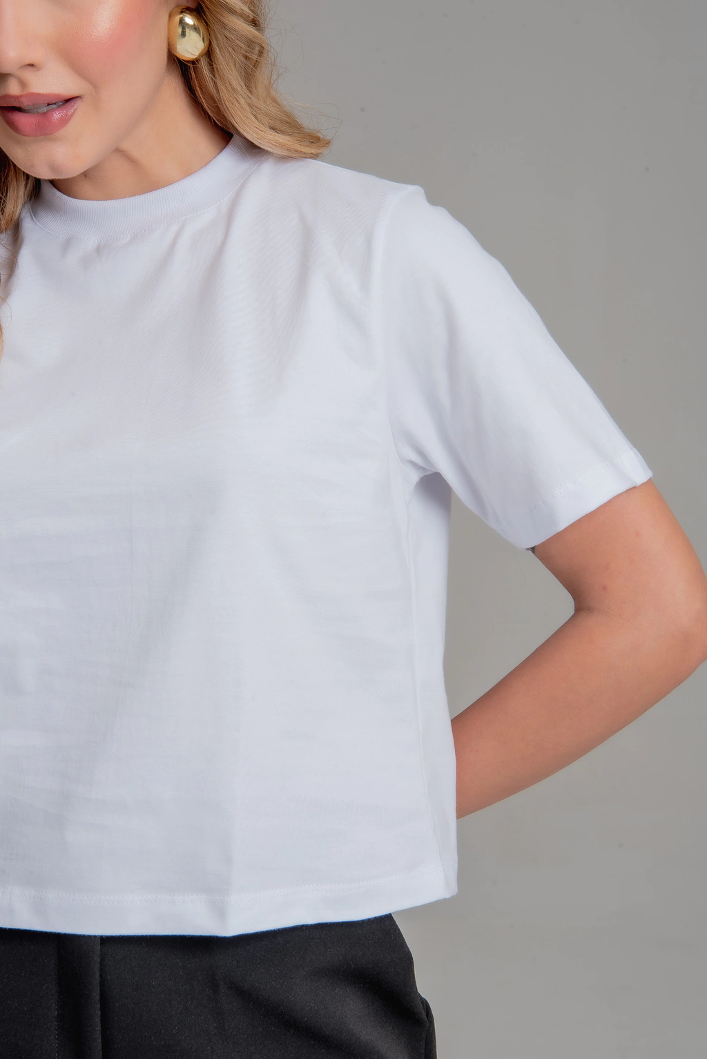 Transforme seu guarda-roupa com a Camiseta Algodão Premium Cropped Alongado!